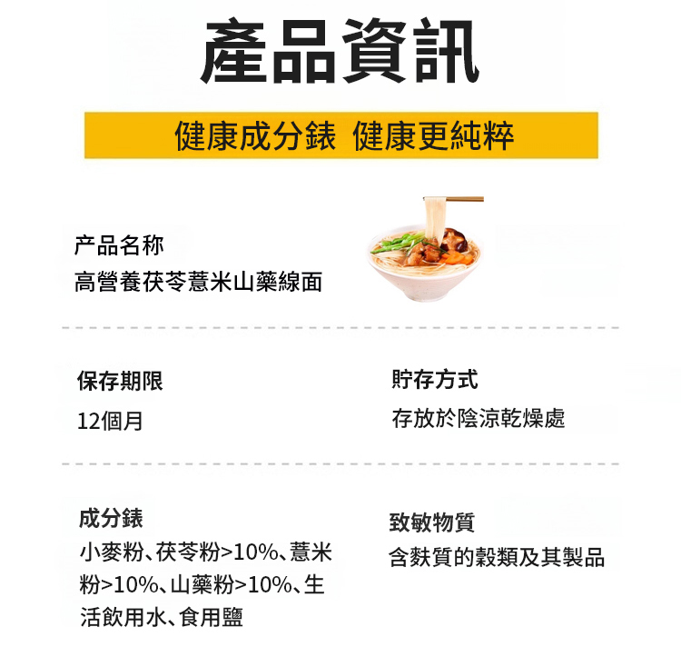 高营养茯苓薏米山药线面
